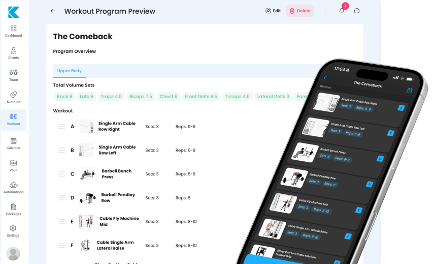 Kahunas is an all-in-one coaching platform offering branded apps, workout logging, nutrition tracking, progress monitoring, and client management tools.